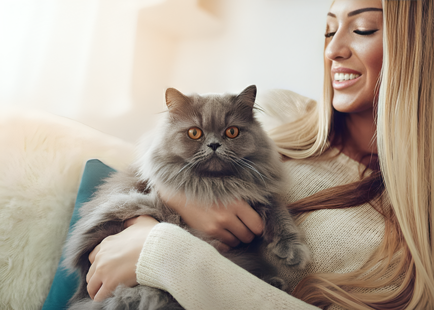 A gray persian cat is affectionate but rarely demanding. They enjoy sitting on a lap for a short time but are just as happy lounging elegantly nearby, like on a sofa cushion or a window perch.